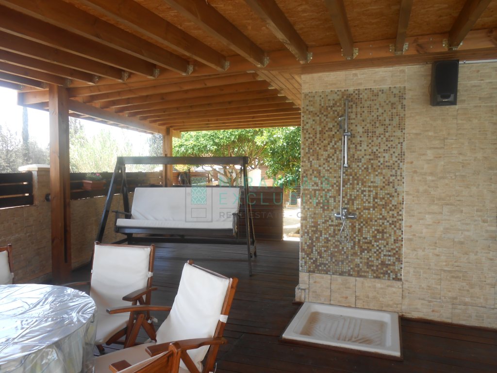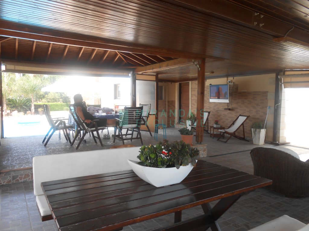 This property is built in a piece of land larger than 2,000 sm. It comprises 4 bedrooms on the first floor with bathroom facilities, a living/dining room with an open plan kitchen opening up to a huge covered veranda with day room, next to the swimming pool. The garden is full of mature trees and flowers and offers peace and serenity. One important feature are the photovoltaics, recently installed on top of the water irrigation system for watering. Because of the large size of the plot, one could easily extend the property to convert it into a rehabilitation centre. A must see!
