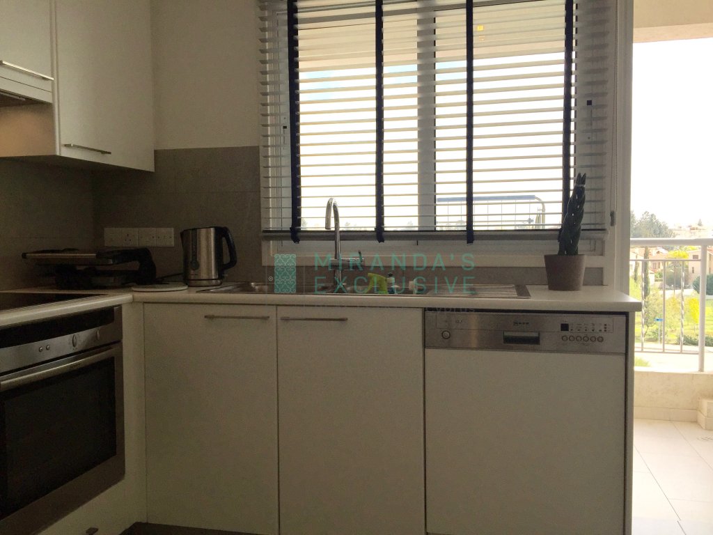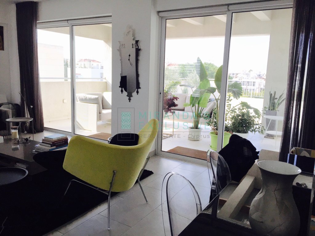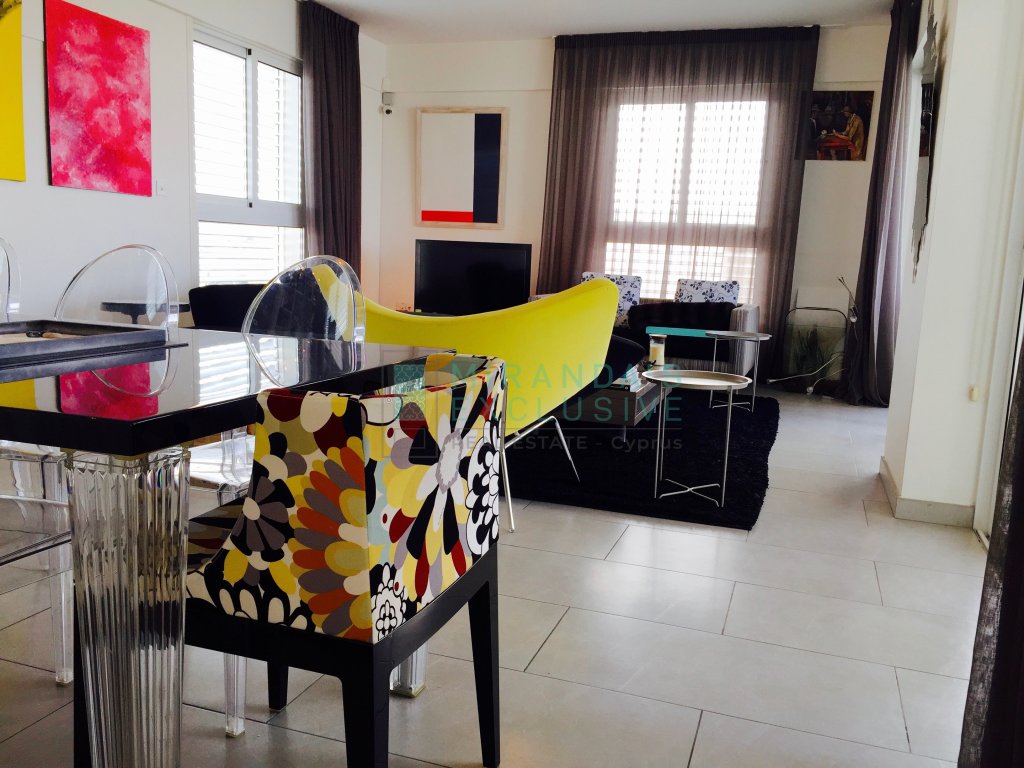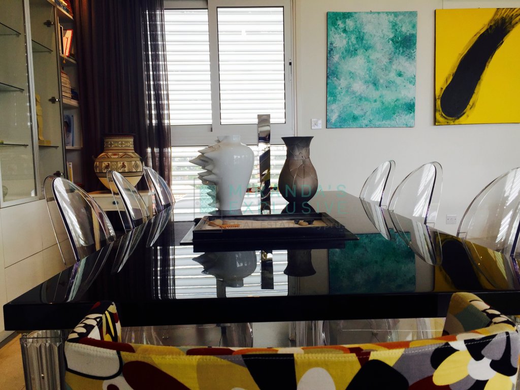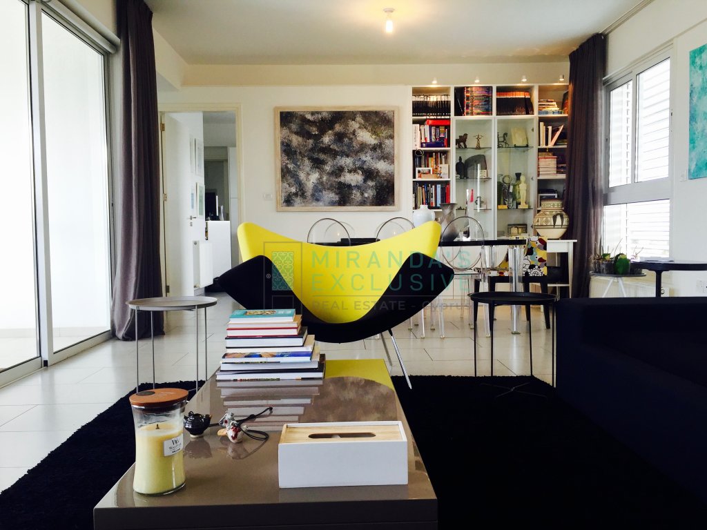 Luxury fully furnished whole floor flat on the top floor of a 3 floor building situated in Strovolos (Costa Theodorou area). It consists of a living/dining room, opening up to a huge veranda of 70 square meters, partly covered. Separate kitchen with all electrical appliances including even dish washer, coffee machine, tumble dryer and microwave. Master bedroom en suite with shower, plus a full bath to service the other 2 bedrooms and an extra guest wc. Expensive and elegant pieces of furniture throughout, the flat comes complete with solar panels, alarm, autonomous petrol central heating, air conditioning units, covered parking space and store room. The price is negotiable but does not include common expenses of 57 euro per month. Pets not allowed! . Large verandas. Fully equipped kitchen with German appliances: Neff, Whirlpool. Washer, drier, dishwasher, oven, electric cooker, microwave, fridge, coffee-maker. Dedicated covered parking. Separate storage room. Water pressure system. Internet and cable TV throughout. Structured cabling system. Entrance/garage. Close to shops and schools. 120 sq.m. plus 70 sq.m. verandas . CCTV with cameras in every room. Modern system with remote access. Alarm system.