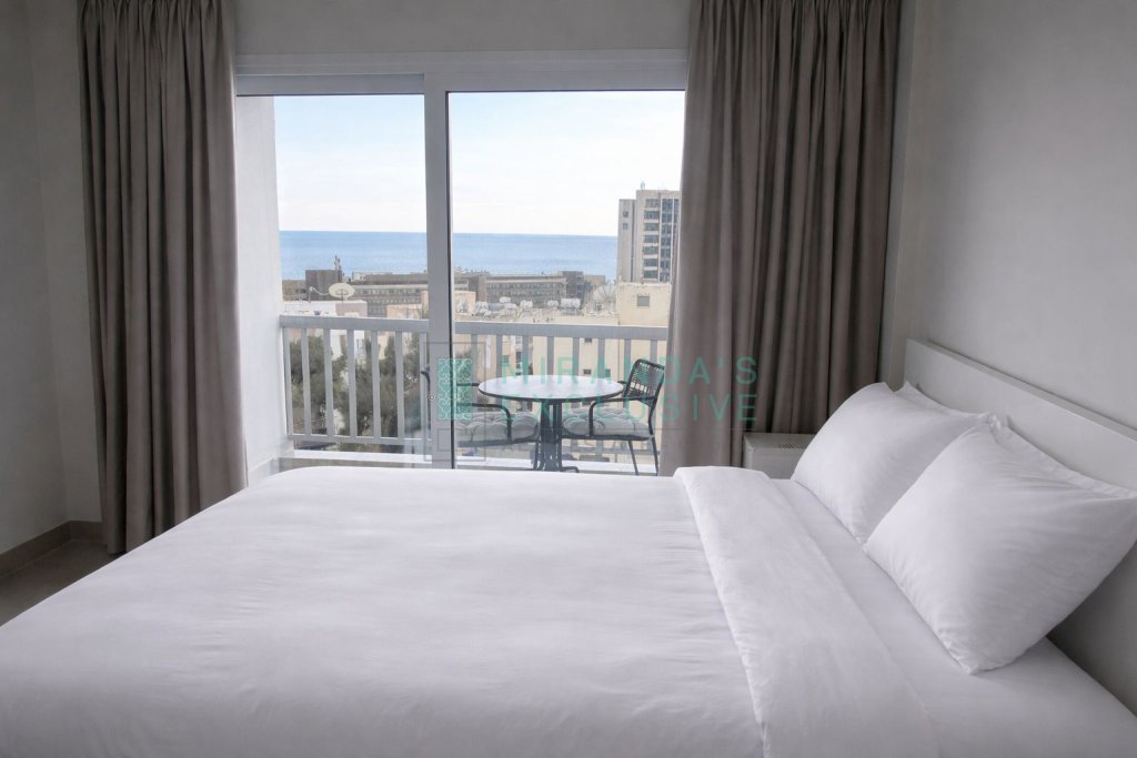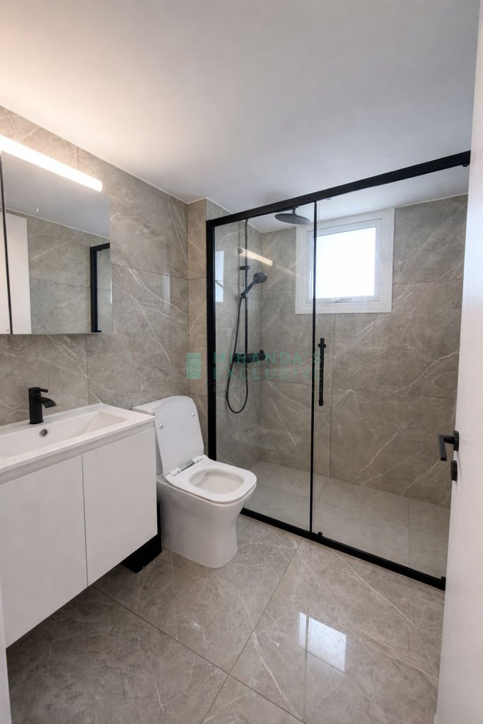 This wonderful 1 bed located opposite the Four Seasons, is walking distance to the beach. Part of an older complex, it has been fully renovated and features brand new appliances and furniture throughout. It comprises a living room and a fully fitted open plan kitchen, a shower with water pressure system and a spacious bedroom opening up to a small, covered veranda offering wonderful sea views. Air conditioned throughout! The price does not include common expenses of euro 25.