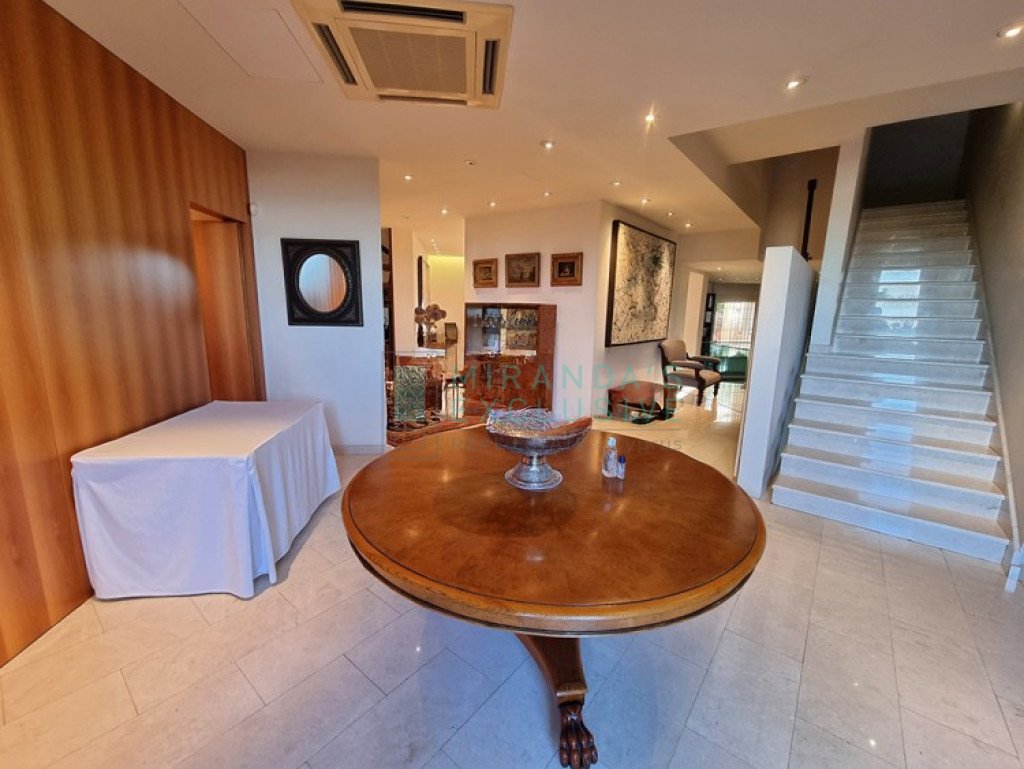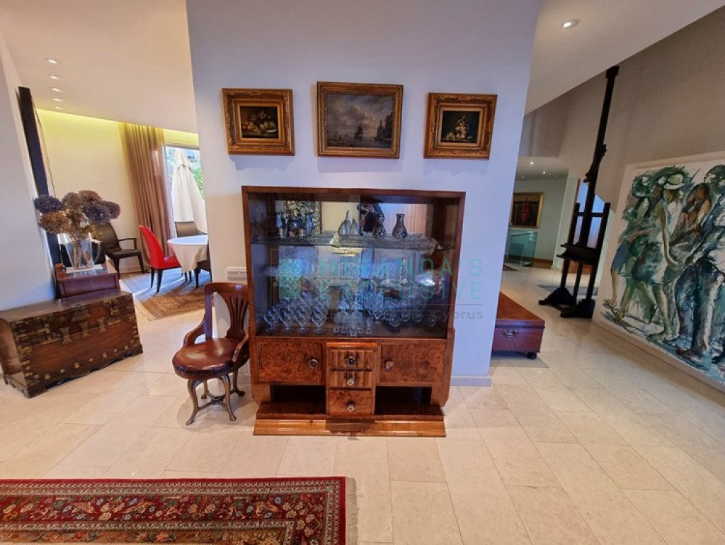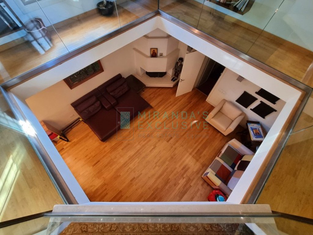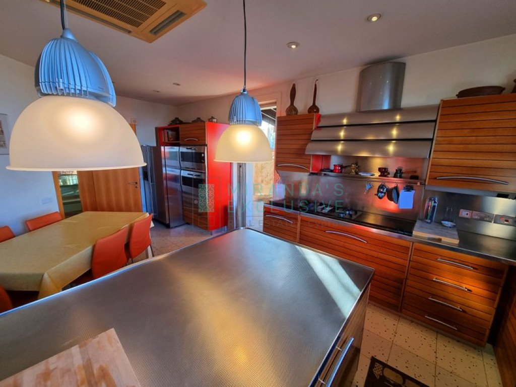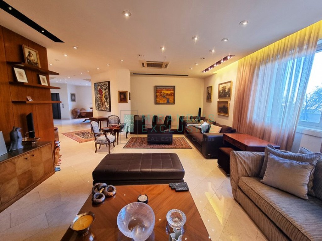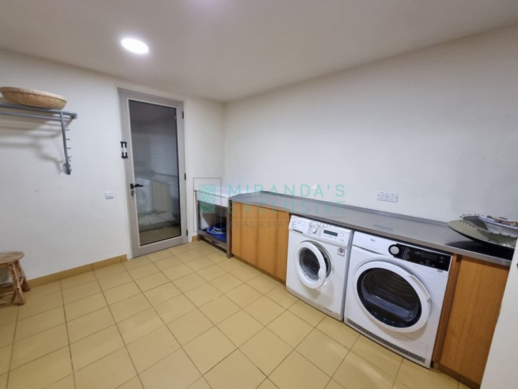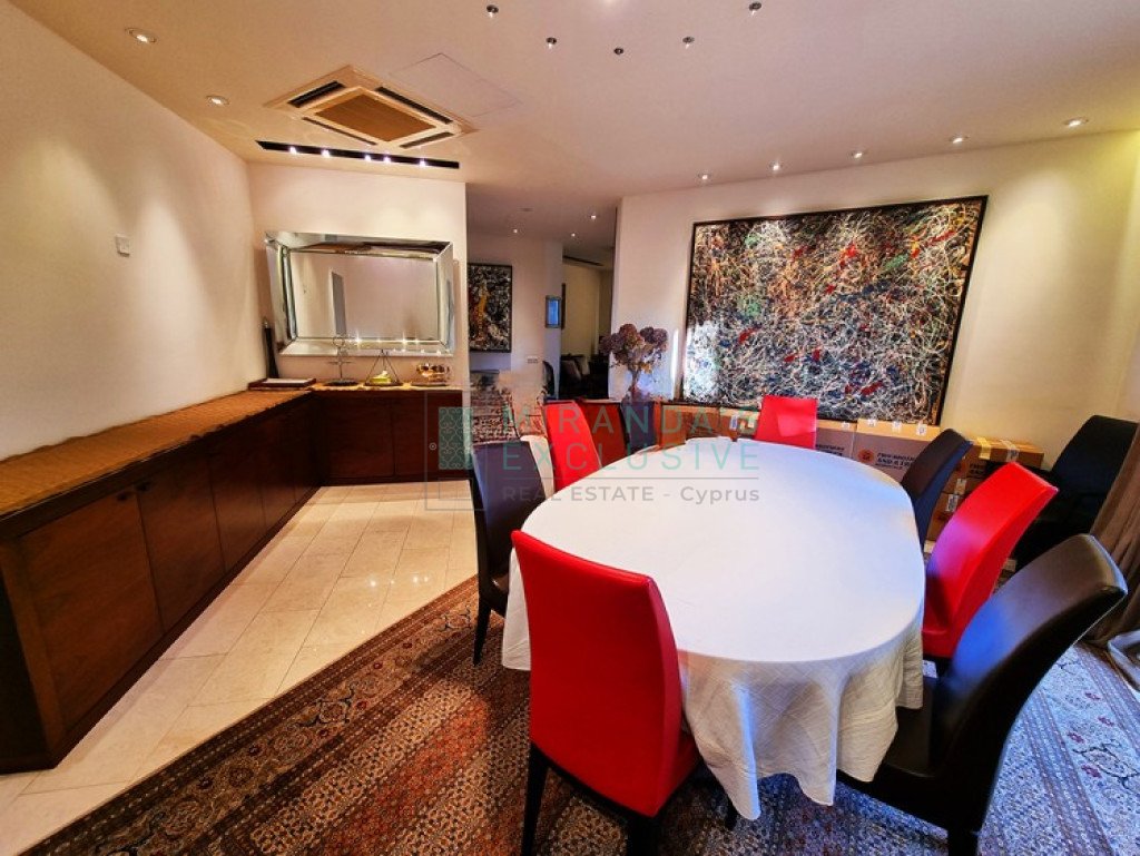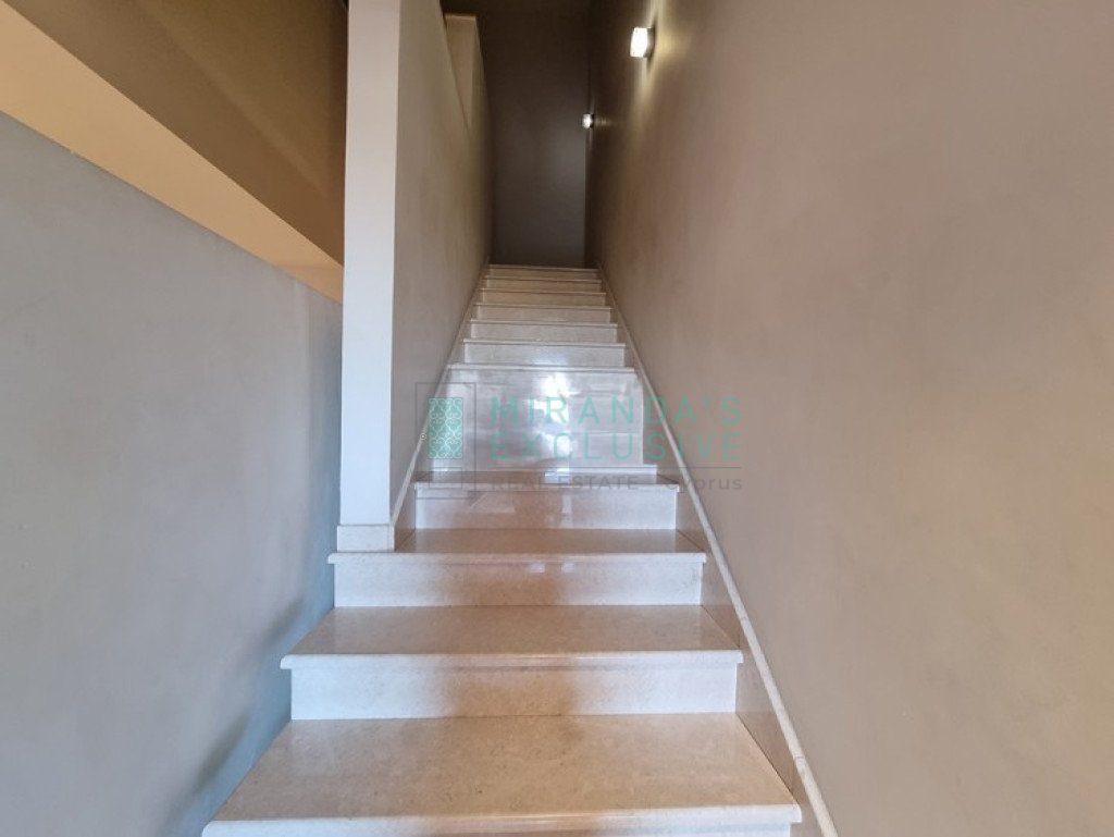 This is a luxurious modern style detached villa in Ilioupolis (near Carlsberg) with high end finishes. The villa is set in a double sized plot 1.008 sqm with amazing surrounding gardens. It is located in a very quiet hill location with excellent access to the highway and is close to shops, schools (Senior School, Forum). The property is on 3 levels with an elevator and offers living accommodation of 975 sqm. In the basement area there is an extra living room area with a separate office and TV room, bar, WC, maids room, laundry and storage rooms. The ground floor comprises a large luxury fitted kitchen sitting and dining area, a large formal dining room, a 2 spacious main living room with recessed lighting and a guest toilet. The upper floor consists of a large master suite with en-suite bathroom, walk-in shower and a corner bath. It also features a separate dressing area with walk-in closet and fitted wardrobes and also another 3 spacious en-suite bedrooms. The house also has an extra very spacious attic. Under floor heating and central air conditioning. The villa has a 5KW solar panel system installed and a spacious garden area . The house can be rented furnished or unfurnished.