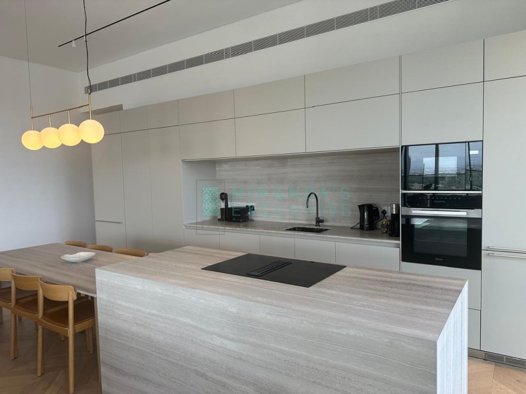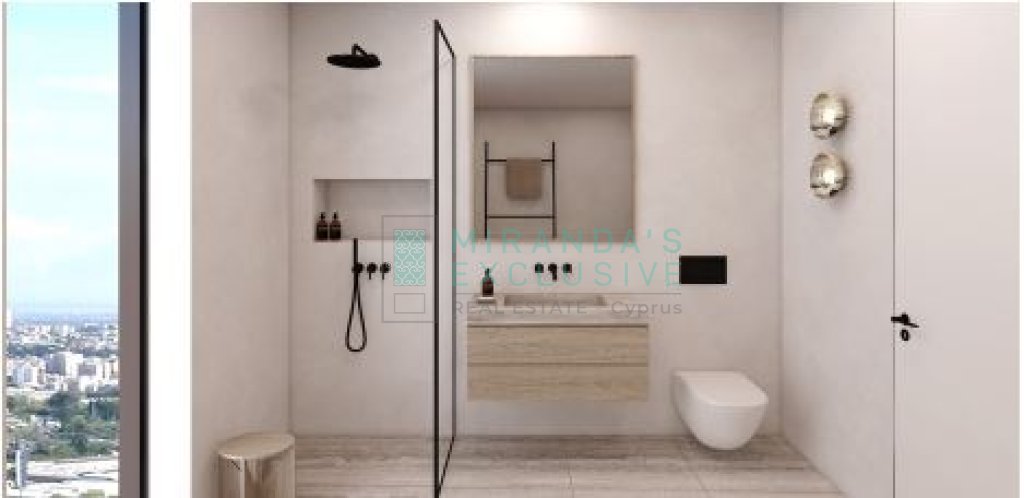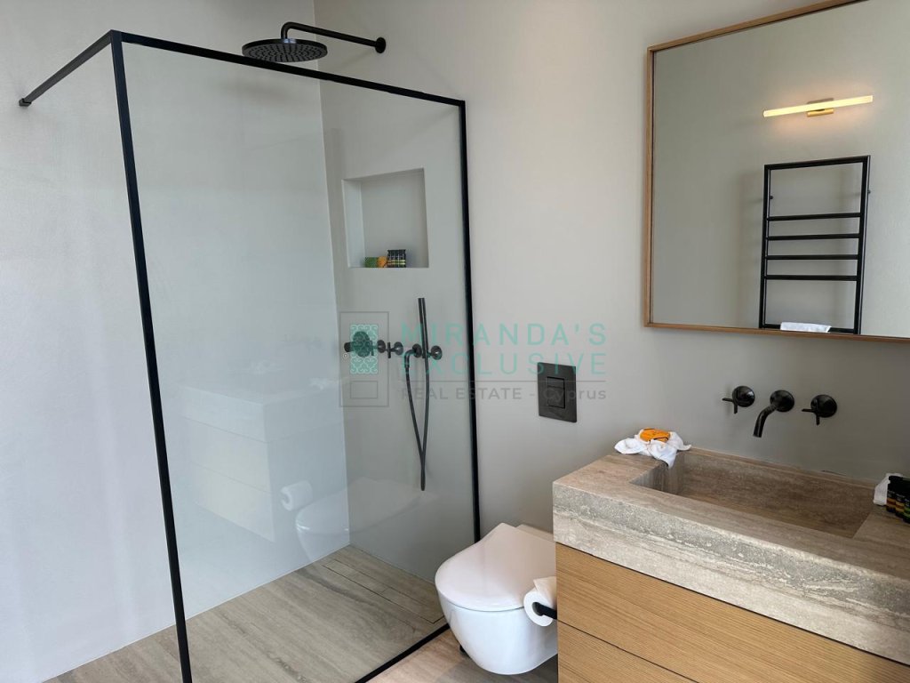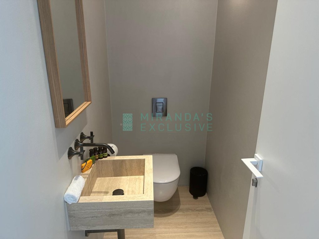 This specific property is 155 sm big, 2 bedrooms, 2 bathrooms, office room and extra guest WC.