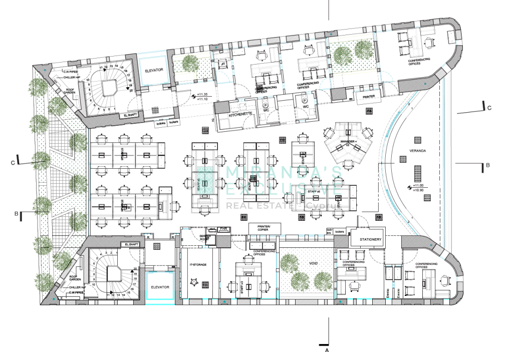 Over 300 sm of working space , including 30 sm of covered verandas, it offers all technical specifications for a modern office.